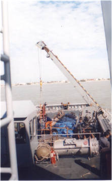 etapas finales de la recuperación del "muerto" con su subida a cubierta.