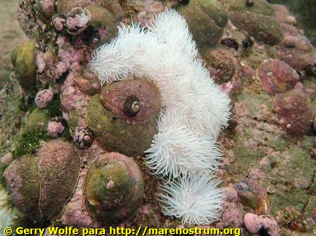 anémonas blancas que cual manto de nieve viva corona el arrecife.