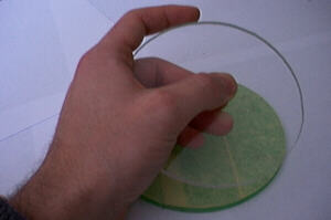 PlexiglasCortar cinco círculos de plexiglas de 125 mm de diámetro. No quitar la protección que lleva para evitar rayar el plexiglas. Usar una de las fundas de PVC para dibujar los círculos y cortarlos con la sierra de vaivén. Comprobar que entran en la funda de PVC de la forma más ajustada posible.