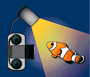 El fotómetro Si tenemos prefijados dos de estos 3 factores que hemos comentado, un fotómetro adecuado nos permitirá determinar el tercero. Normalmente se le indica al fotómetro la sensibilidad de la película y la velocidad de obturación, a lo que el fotómetro nos sugerirá una apertura correcta para el diafragma, de forma que podamos obtener una exposición correcta en cualquier situación. La mayoría de las cámaras lleva un fotómetro integrado, incluyendo la Nikonos V y la Sea&Sea Motor Marine II-EX. Utilizando un flash manualmente Primero hay que recordar que el flash iluminará solo el primer plano. Ningún flash iluminará un fondo que esté a más de 3 metros de distancia. Incluso cuando el flash se emplee para iluminar el primer plano, un fotómetro es necesario para determinar la correcta exposición para el fondo, especialmente si el fondo es el azul fuertemente iluminado por el sol. Utilizando el número guía del flash La intensidad de la luz emitida por el flash y la distancia del flash al objeto a fotografiar son valores críticos para determinar la correcta exposición. Todo flash se caracteriza por un tener un "número guía" que indica la potencia del mismo. El numero guía varía de acuerdo con la sensibilidad de la película que se esté utilizando. Normalmente el manual proporcionará los números guía del flash que se esté utilizando, que depende de la distancia (cuidado con las conversiones en metros o en pies) y de si el flash se utiliza encima o debajo del agua. Por ejemplo para el flash Sea & Sea YS-50 TTL el número guía terrestre es 24 para ISO 100 que se reduce a 12 para la misma película pero en uso subacuático. Midiendo la distancia en pies estos números guía cambian a 79 y 39. Fórmula para la exposición de primeros planos Una vez se conoce el número guía del flash que se está utilizando, tan sólo es necesario conocer una simple fórmula para determinar qué ajustes hay que hacer a la cámara para conseguir una exposición correcta: NGuía / DistanciaS = fxx Es decir, el número guía (NG) dividido por la