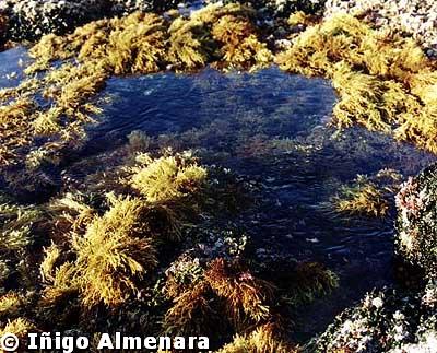 con la zona intermareal encontramos una banda de algas pardas (Cystoseira).
