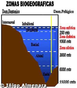 zona AFÓTICA (sin luz). Dependiendo de la profundidad la