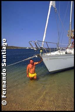 pues con ancla en popa, me acerqué a la playa le di al italiano mi ancla