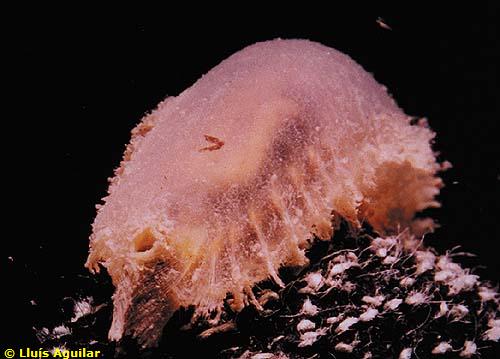 blocs de roca, alguns blocs extraplomats, on creix la gorgònia blanca (Eunicella