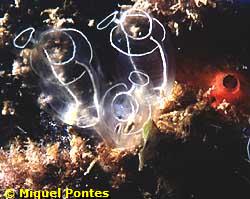 tunicats Clavelina lepadiformis gegants, actinies, anèmones incrustants grogues