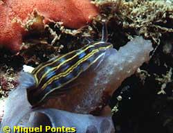 superficie, encontramos puestas de nudibranquios en las praderas de posidonia. La primera