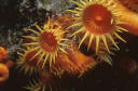 a la dreta, amb penya-segats tapissats d'esponges i anemones grogues