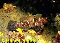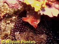 "pintarroja" Scyliorhinus sp. fijado en un alga del lugar. |