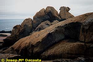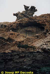 A la línia litoral i com a resultat de l'erosió de la mar i de la meteorització dels
