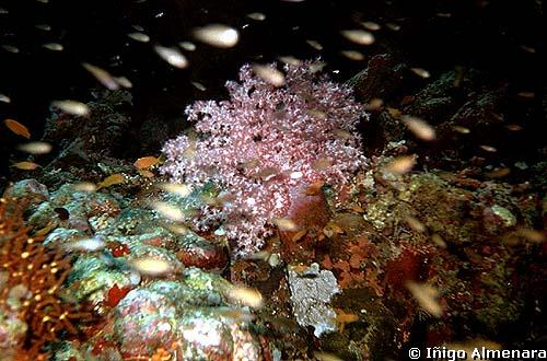 destacar la gran cantidad de corales blandos que se dejan mecer por la corriente para