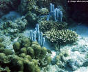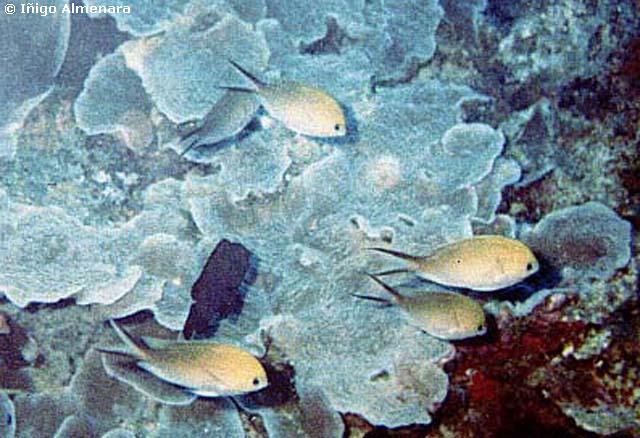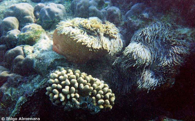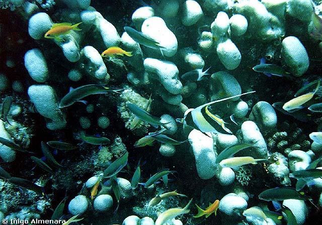 que, pululando alrededor de los corales duros y blandos que les sirven de