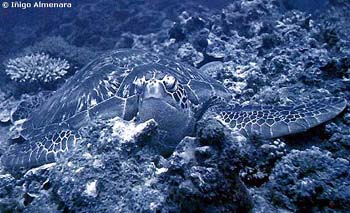 corales, las tortugas bobas son las reinas del lugar.