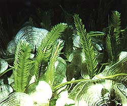 Caulerpa taxifolia es una alga muy bonita que posee un tallo reptante llamado estolón,