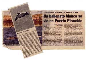 Me sentí como aludido, ya que en dicho foro firmo como Luis, de la Tierra del Viento, y no pude más que responderle: Hola, voy a tomar la posta y dar mi humilde opinión de lo poco que sé en cuanto a ballenas francas (Eubalaena australis). He leído el recorte del diario y está escrito por gente que, si bien son corresponsales en la zona del diario Clarín, presumo que no han tenido el suficiente tiempo para informarse de qué se trata. En el mismo diario, el mismo día, salió una noticia sobre aventuras en Madryn y tenía una fotografía de una tonina overa (Cephalorhynchus commersonii) del Puerto de Rawson. Aparentemente, y hasta lo que tengo entendido, no existen las ballenas albinas. Para llamarlas albinas se tienen que dar algunos factores... no pasa eso con la ballena franca. Lo que sucede en los ballenatos y subadultos blancos es una falta de pigmentación en la piel, lo que las hace blancas y algunas con muchas manchas oscuras. Al carecer de pigmentos, lo que se refleja en la epidermis es la blancura de la grasa, que hace muy llamativa a la ballena...